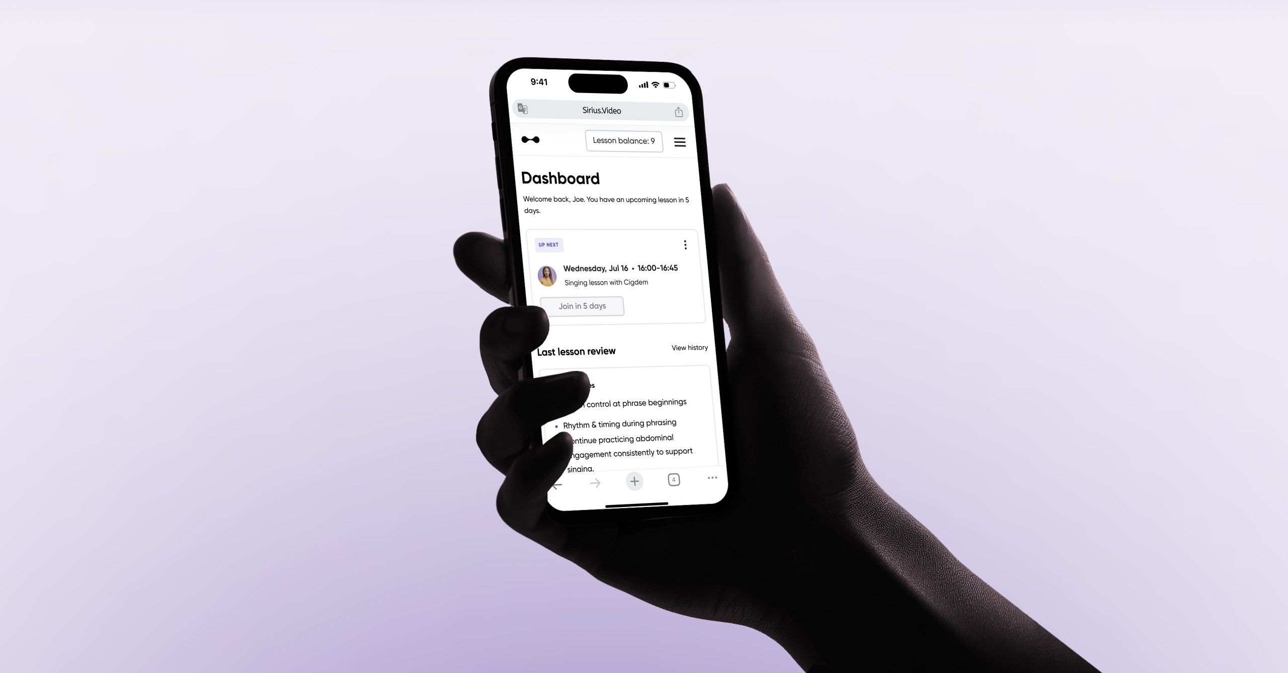 I added lesson balance visibility directly in the top navigation, making it always accessible, impossible to miss & consistent across screens